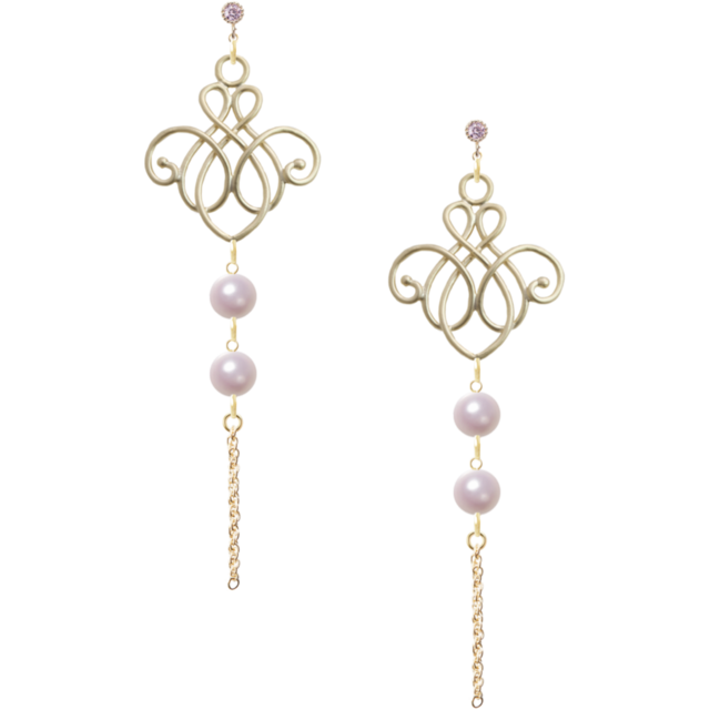 ピンクパール&アンティーク風モチーフ シルバー925ピアス(No91)